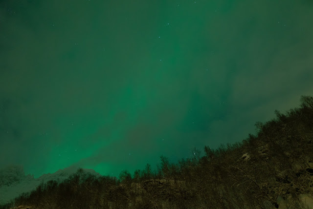 Finally, at fjord near Elsnes, they saw an opening in the skies and made a stop and here... we got the Lady Aurora doing some slow dance.